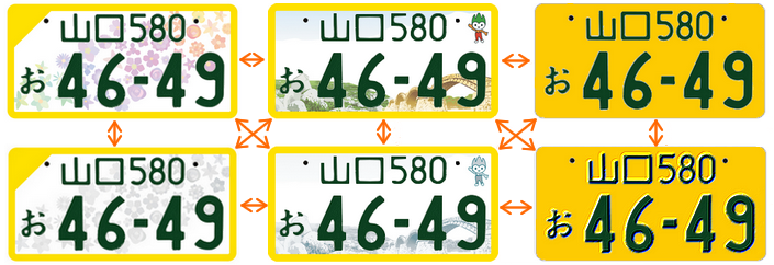 ただし、全国版・地方版図柄入りナンバープレートの場合、分類番号が3桁であっても自動車検査証の『使用の本拠の位置』が下関市で、『山口』ナンバーが付いたお車の場合は、同じ番号で全国版・地方版図柄のナンバープレートにすることはできません。